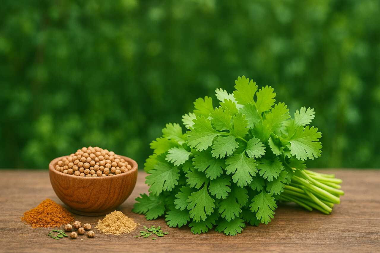 The fresh leaves contain aldehydes that give a citrusy, sharp, and sometimes soapy flavor. The seeds are rich in linalool and pinene, which create a warm, nutty, and slightly sweet aroma. Roots carry a deeper, earthy fragrance used in curry pastes.